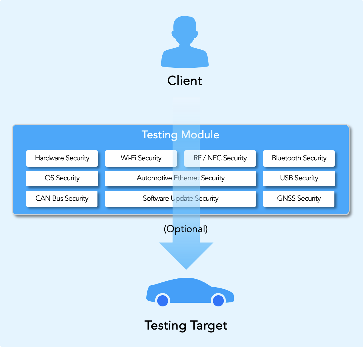 - Due to the variety of internal cybersecurity environments across different vehicle manufacturers, security testing requires understanding the specifics of each vehicle and considering testcases based on each environment.